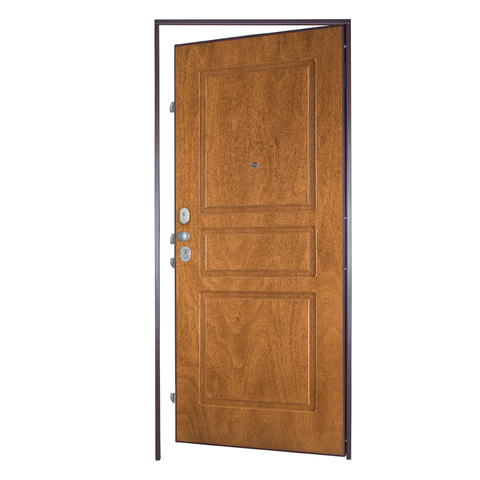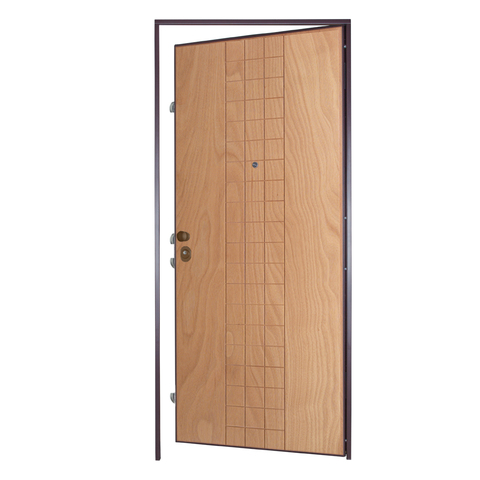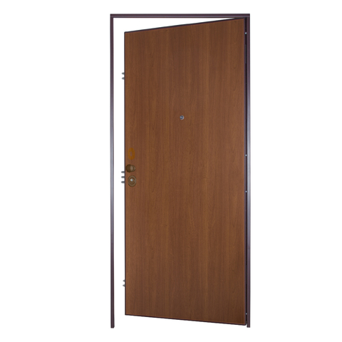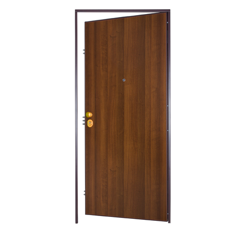 Puerta de acero inoxidable antirrobo con certificado CE, acabado en nogal de melamina, transmitancia térmica de 1,8 W/m2k para energía mejorada