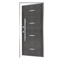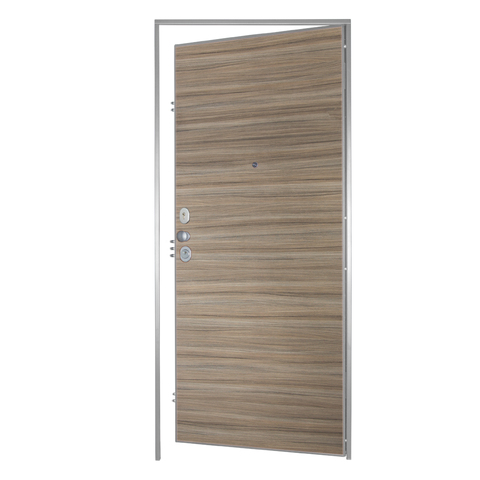 Elegante y moderno diseño de acero inoxidable, puerta de nogal de melamina Premium, 1,8 W/m2k, transmitancia térmica, antirrobo, Manual cálido